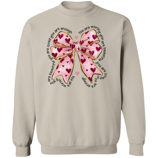 Valentine's Day You Are Worthy Coquette Bow Sweatshirt